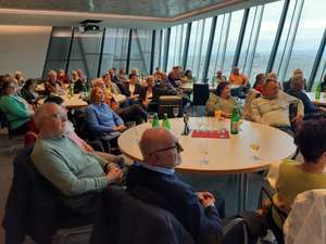 Nach einer Führung durch den Stephansdom und einer Besichtigung der Katakomben stand der Besuch bei der Raiffeisen Bank International im Mittelpunkt. Die Teilnehmer erhielten von Gunter Deuber, Bereichsleiter Volkswirtschaft und Finanzanalyse, einen aktuellen Einblick in Wirtschaft und Finanzmärkte. Vorstandsvorsitzender Johann Strobl informierte in einem Vortrag über die Bankgeschichte, das internationale Geschäft und die wirtschaftliche Lage. Den Abschluss bildete ein reger Austausch mit den Teilnehmern.